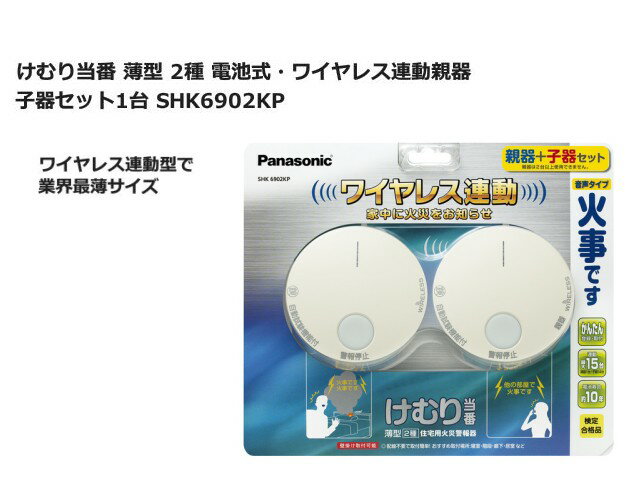 パナソニック けむり当番 薄型 2種 電池式・ワイヤレス連動親器 子器セット1台 火災報知機 防災 SHK6902KP