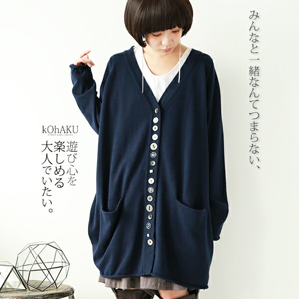 選べるM〜3Lサイズ展開!『kOhAKUデザインボタンカーデ』【 レディース トップス カーディガン ニット 羽織り Vネック ユニセックス ペア 綿100% 長袖 おうちで洗える コハク 】【メール便不可】